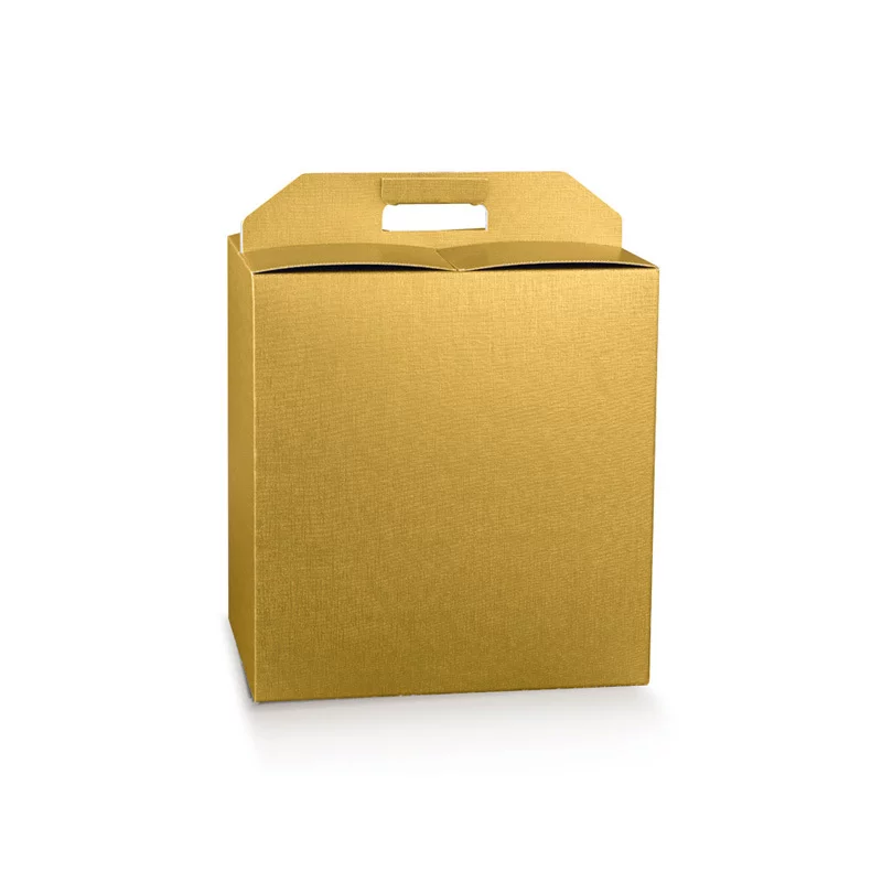 Cutie clasică pentru cadouri din carton rezistent  și cu mâner extern. Creatiile sunt diverse, cu model desenat ori embosat,  si sunt potrivite atat pentru cadouri gastronomice cat si pentru obiecte ce pot fi oferite cadou. Greutatea recomandată a fi introdusa in cutie: de la 3,5 la 7 kg.