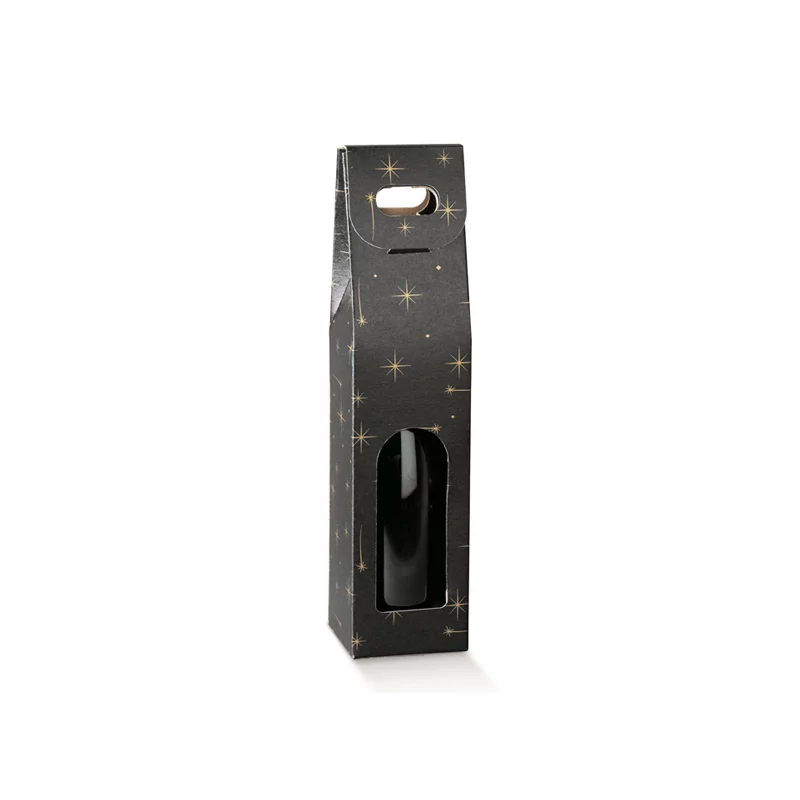 Cutie din carton cuplat, cu mâner, pentru ambalarea si transportul unei sticle de model Bordeaux sau Burgundy.